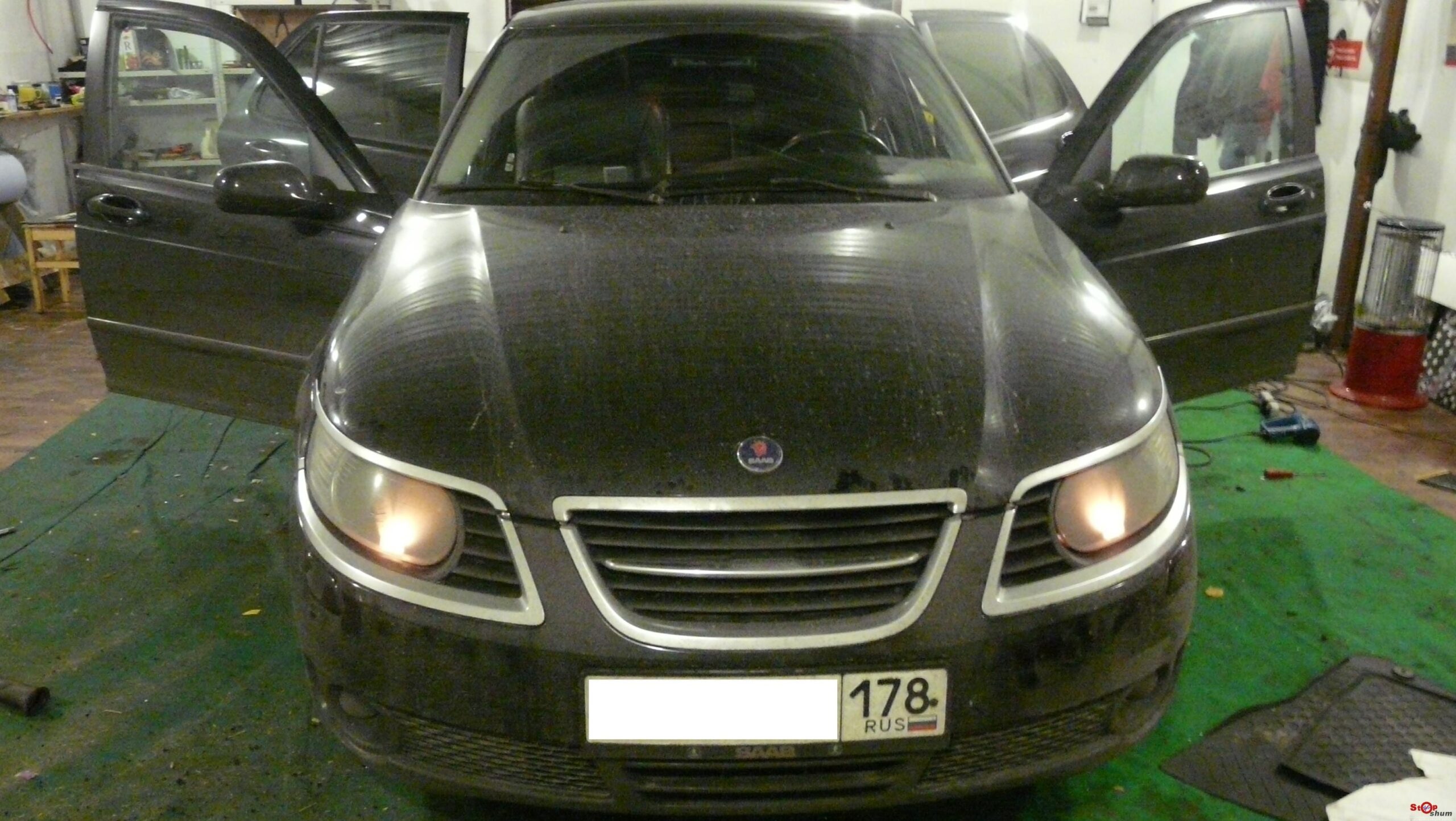 Сделали полную максимальную шумоизоляцию на Saab 95. Вариант premium.(Bomb Premium+Aero Plus+Акцент 10мм+Барьер 10мм+Biplast premium+Акцент премиум+Noise block 2mm)+наружняя обработка передних арок