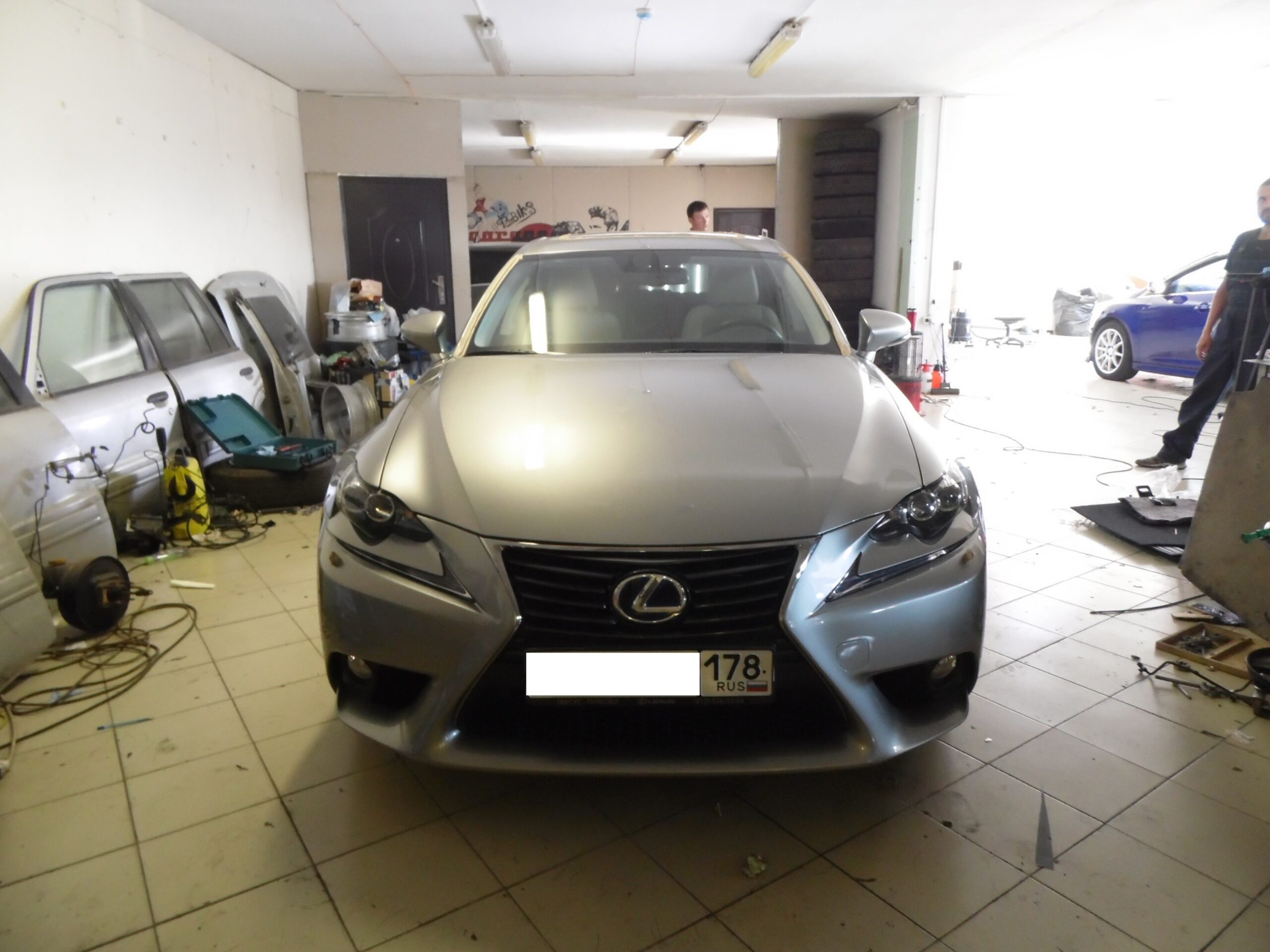 Во первых, как я и говорил, сегодня мы работали не у себя в стенах...А поехали делать шумоизоляцию на выезд...Нам позвонила сторонняя компания, которая занимается другим видом деятельности , и попросила приехать , сделать шумоизоляцию клиенту....Клиент встал на длительные работы , и захотел в одном месте сделать и шумоизоляцию... Ну и эта компания вышла на нас, и пригласила нас к себе в бокс, где и стояла данная особа...