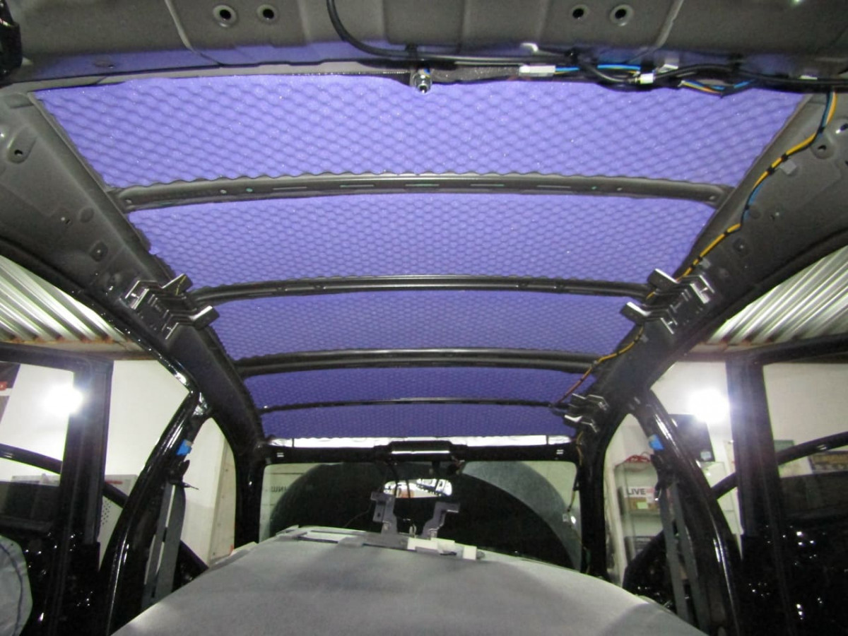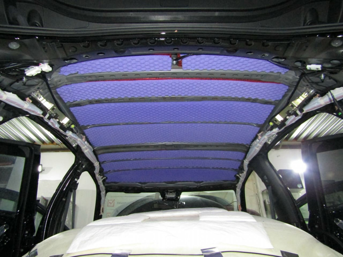 Шумоизоляция потолка направлена на устранение не только шумов, но и вибраций. Колебания возникают как от воздействия воздушных потоков, так и от работы крупных узлов и агрегатов автомобиля. Чтобы крыша не становилась источником шума, необходимо усилить ее антивибрационным и шумопоглощающим материалами.