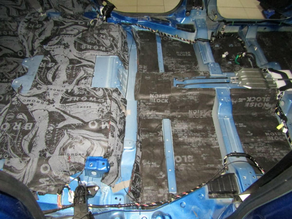 Второй слой необходим для устранения звуковых волн и улучшения теплоизоляционных свойств пола. Его делают из универсального материала STP Noise Block, подходящего для обработки любых частей автомобиля.