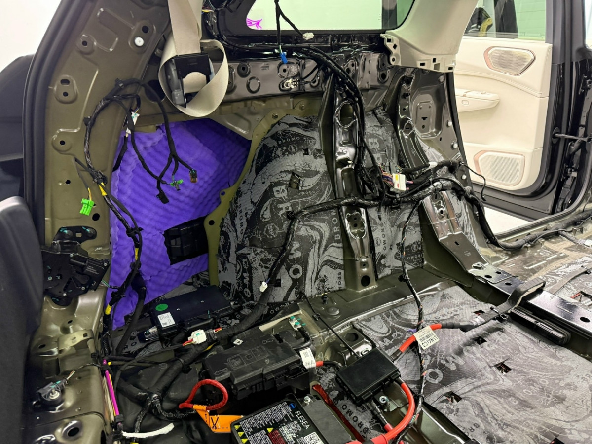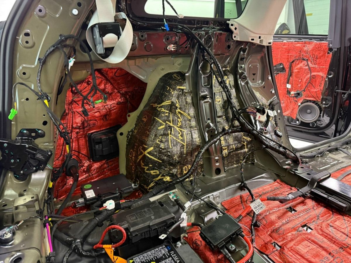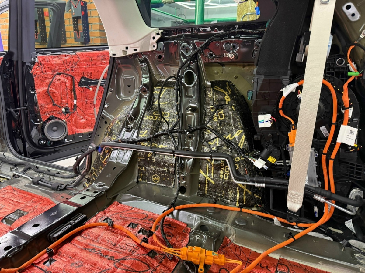 После завершения монтажа шумоизоляции специалисты возвращают декоративную обшивку на место, подключают электронику. Используемые материалы защищают от проникновения внешних звуков, устраняют резонансы и помехи в звучании аудиосистемы.