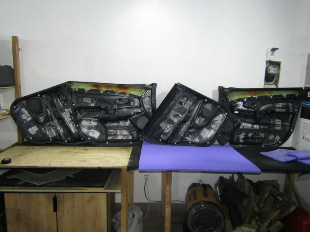 по максимуму: включает капот,крышу,4 двери,4 арки внутри салона,пол салона,пол багажника, задние крылья, крышка багажника.