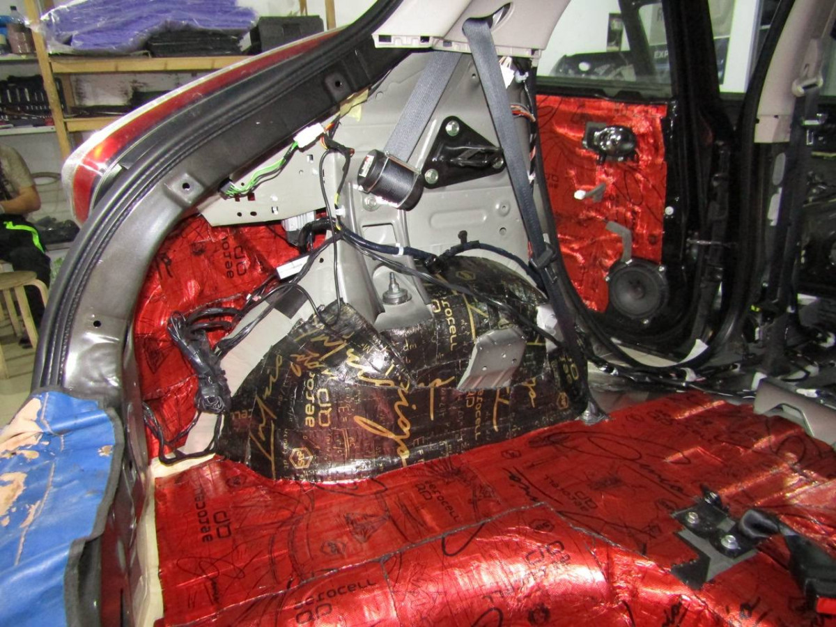 Для обработки арок обязательно нужно использовать плотные вибродемпферы, поскольку эта область подвержена сильным вибрациям. STP Aerocell Intrigo эффективно гасит колебания, не оказывая излишней нагрузки на конструкции. Дополнительно на арки устанавливаются STP Bromo, обладающие функциями звукоизолятора и звукопоглотителя.