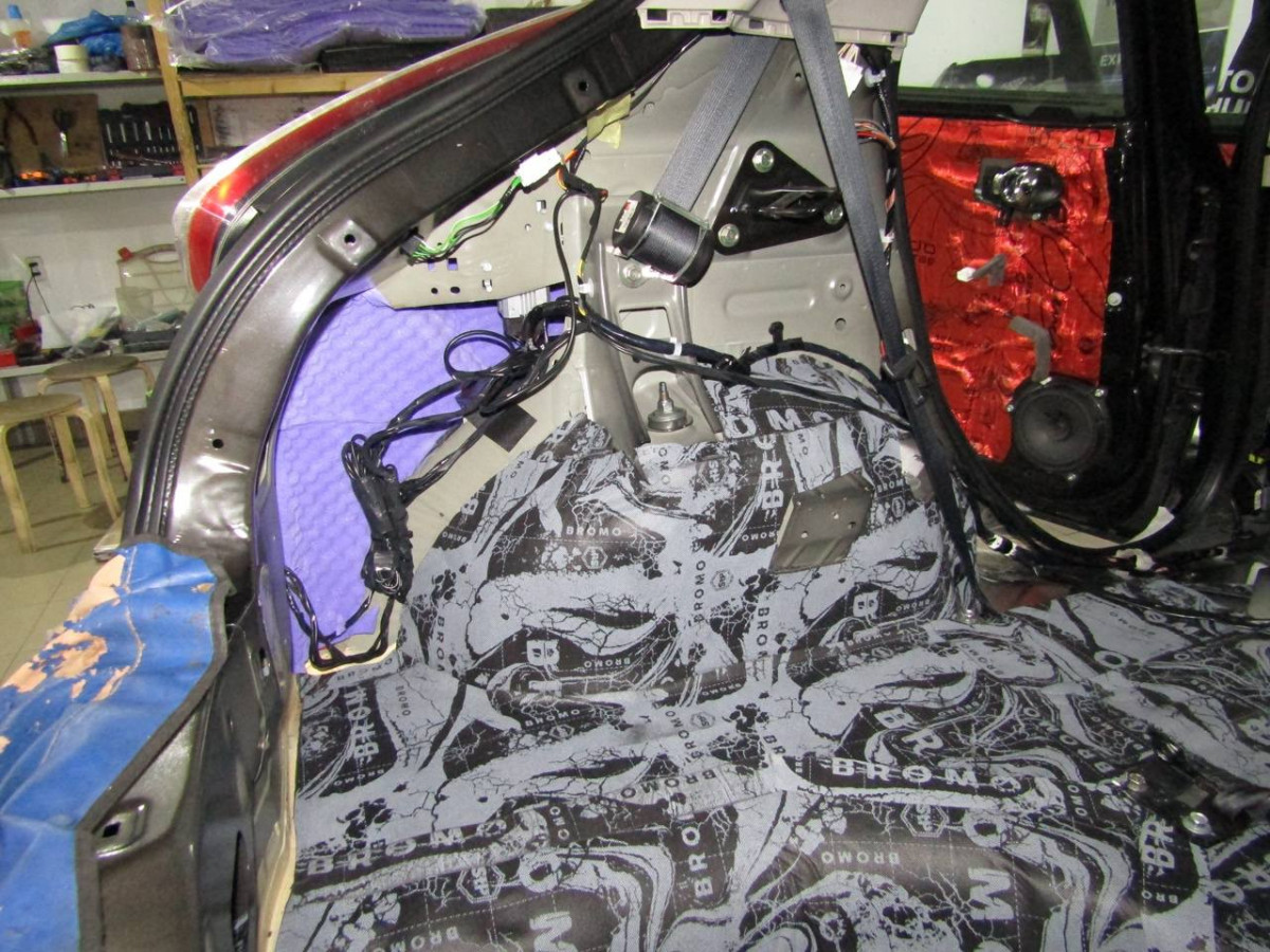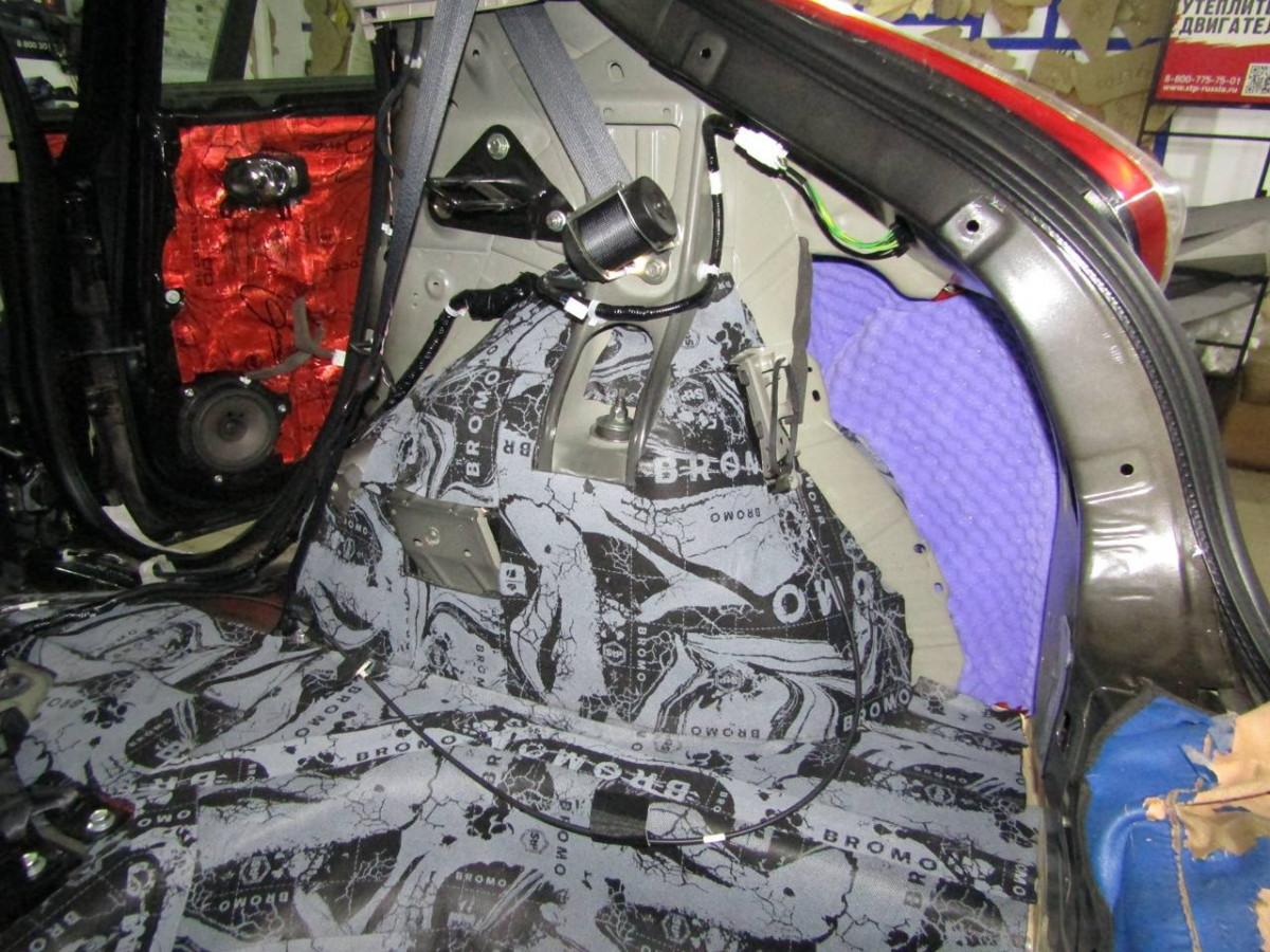 Поверх укладывается STP Bromo, обладающий функциями звукопоглотителя. Облегченный звукопоглотитель Biplast Premium используется для оклейки вертикальных элементов багажника — это крылья автомобиля. Это легкий материал, нечувствительный к воздействию агрессивных веществ, влаги, солнечных лучей. Для шумоизоляции крышки подойдут облегченные STP Aerocell Genio и Biplast Premium.