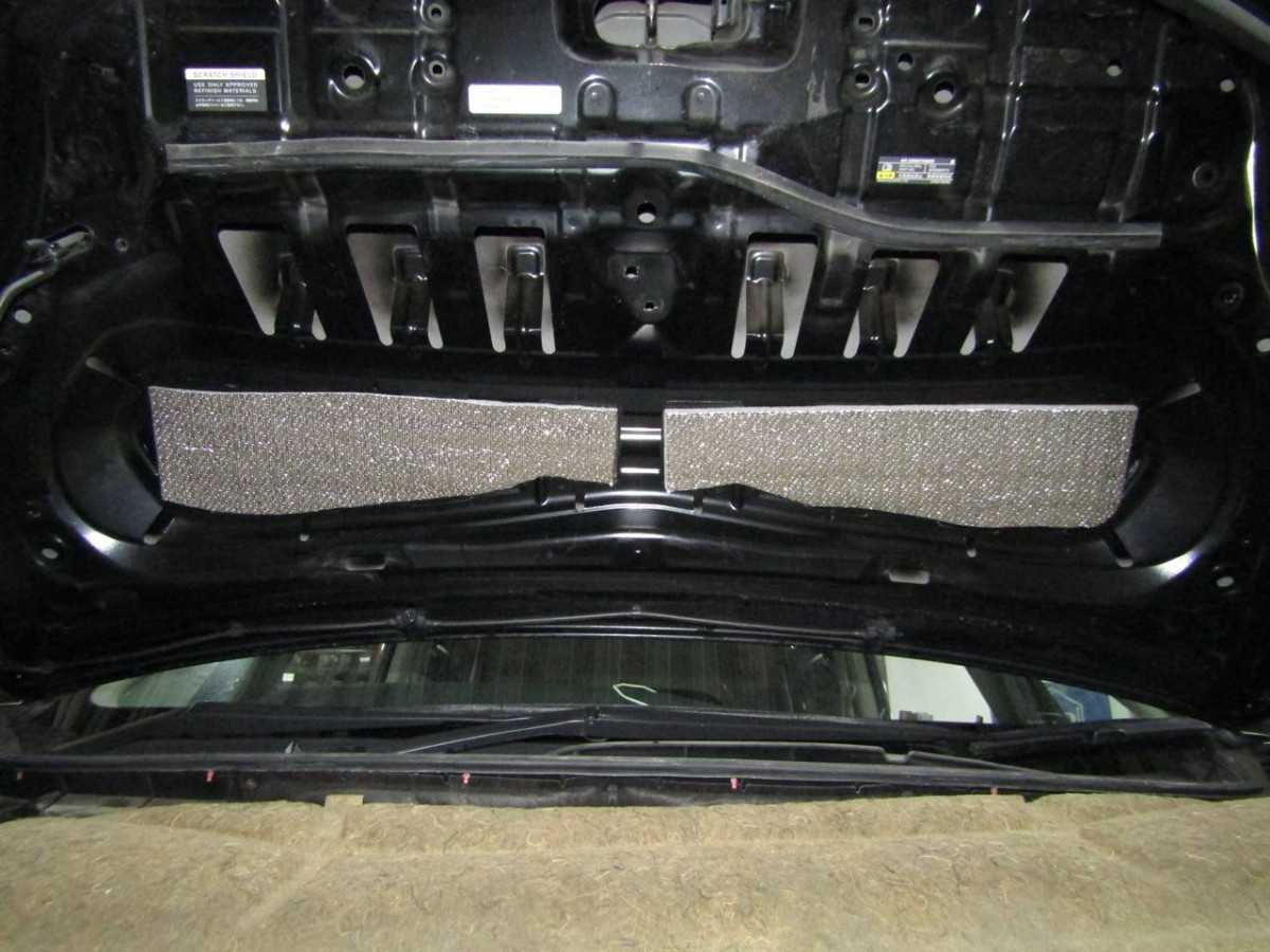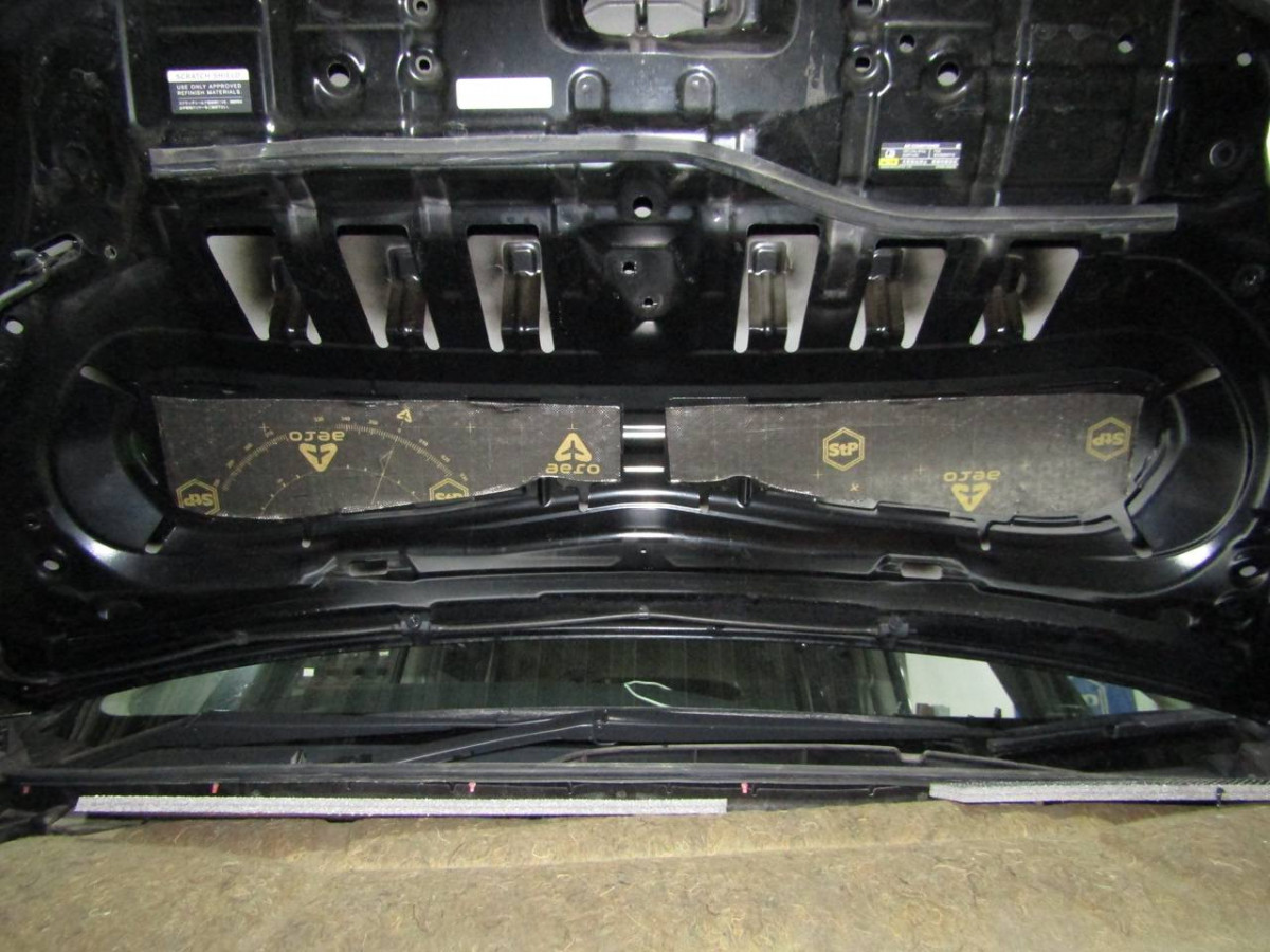 2. Устанавливается первый слой шумоизоляции из STP Aero. Облегченный материал идеально подходит для обработки крышки капота.
