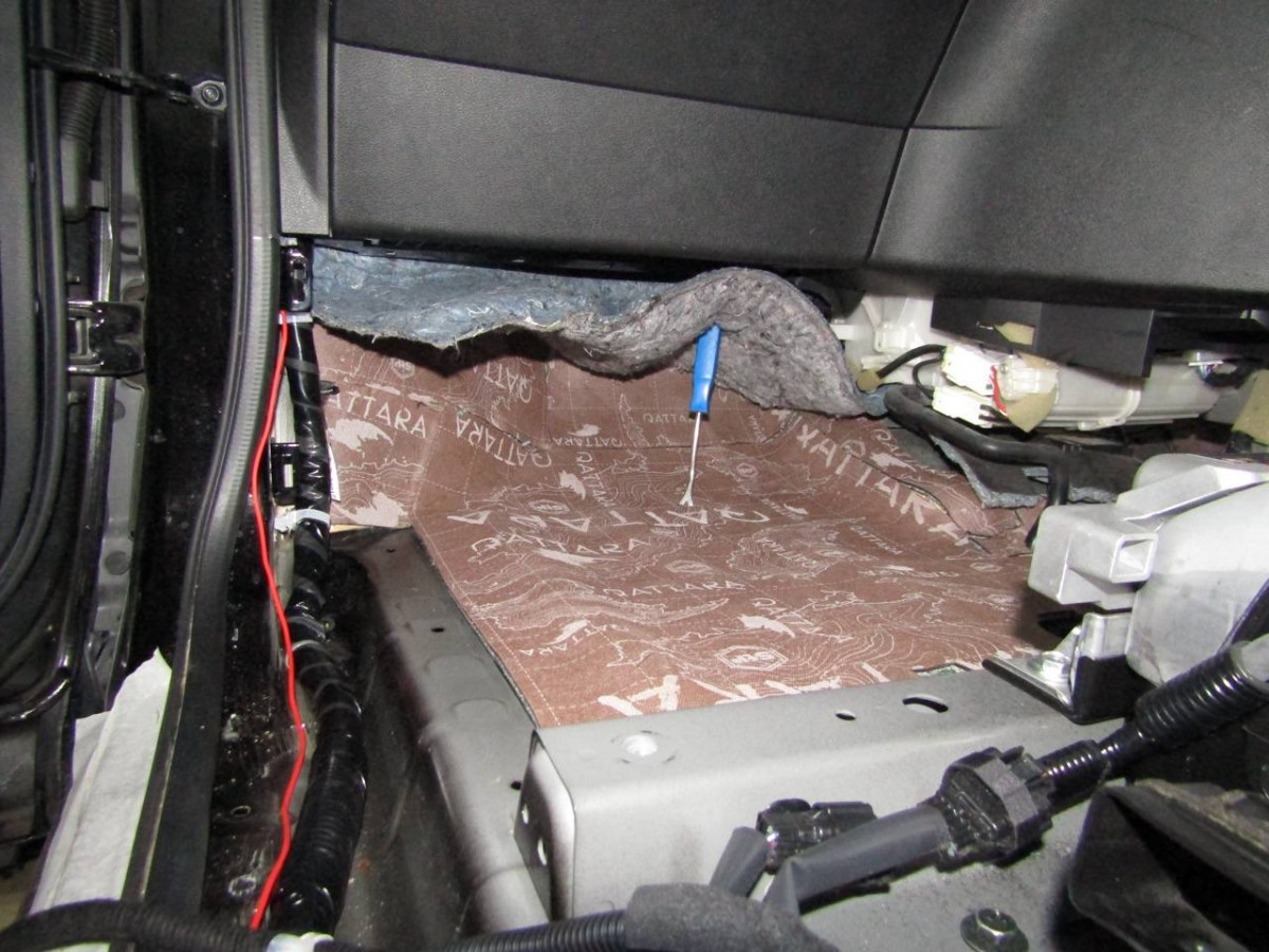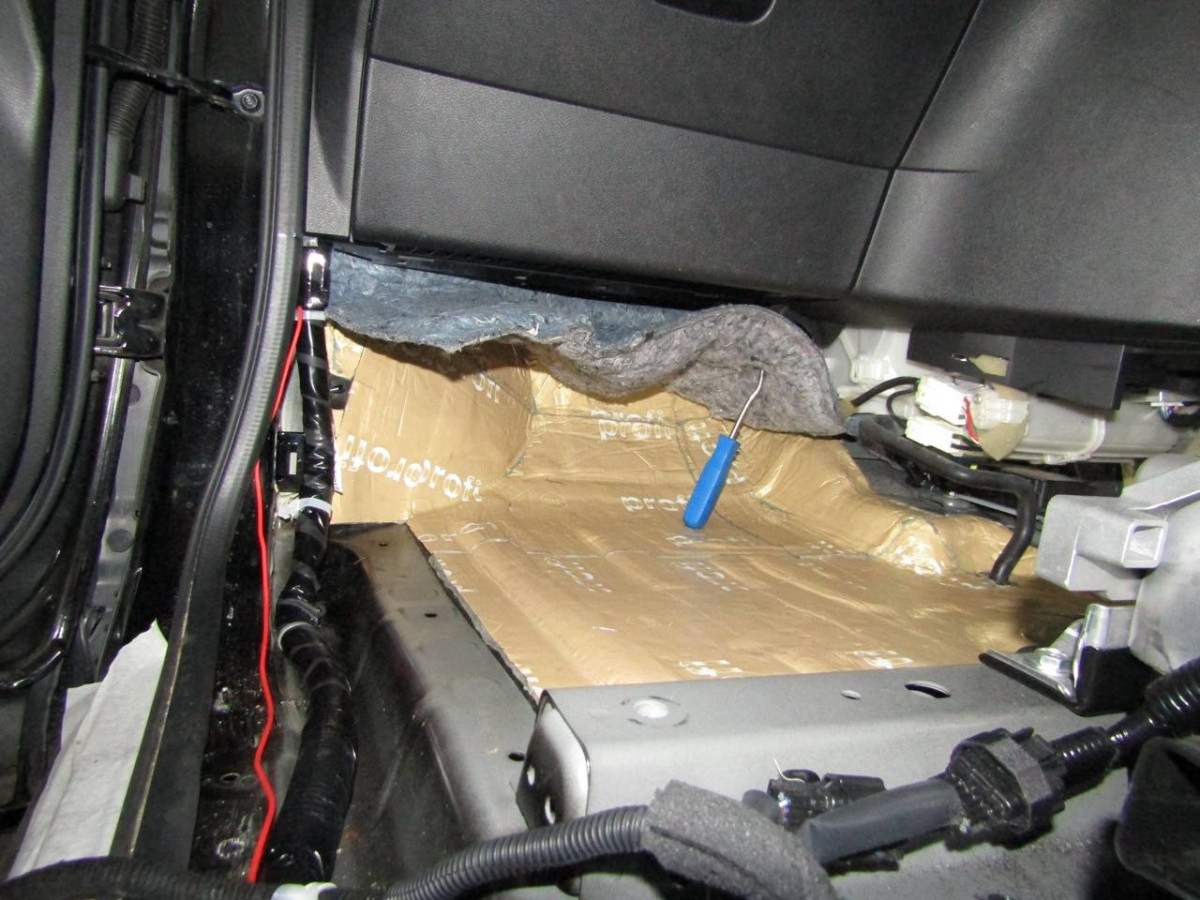 Проклейка пола ‒ сложный этап шумоизоляции, занимающий несколько часов. Для получения доступа к поверхностям демонтируются и выносятся сиденья, консоль, напольное покрытие. После этого удаляются пыль и мусор, днище очищается от следов коррозии и жира.