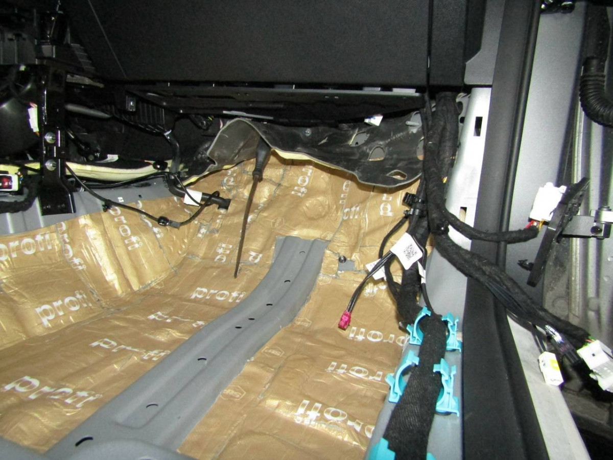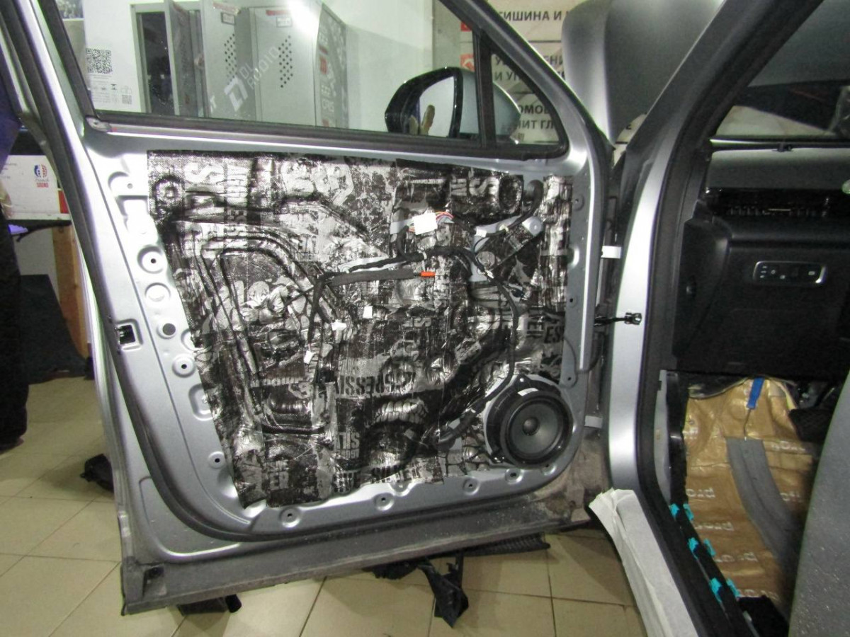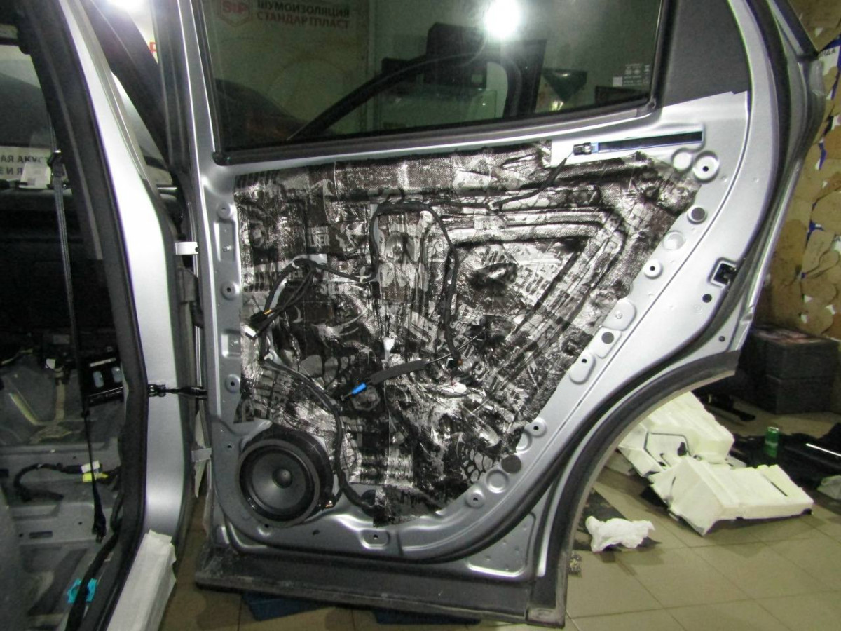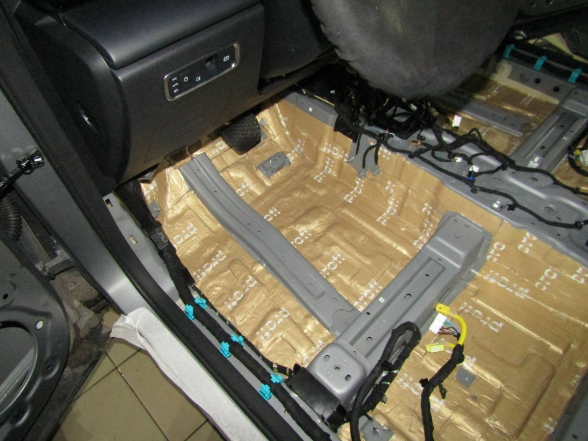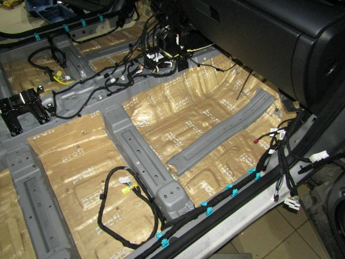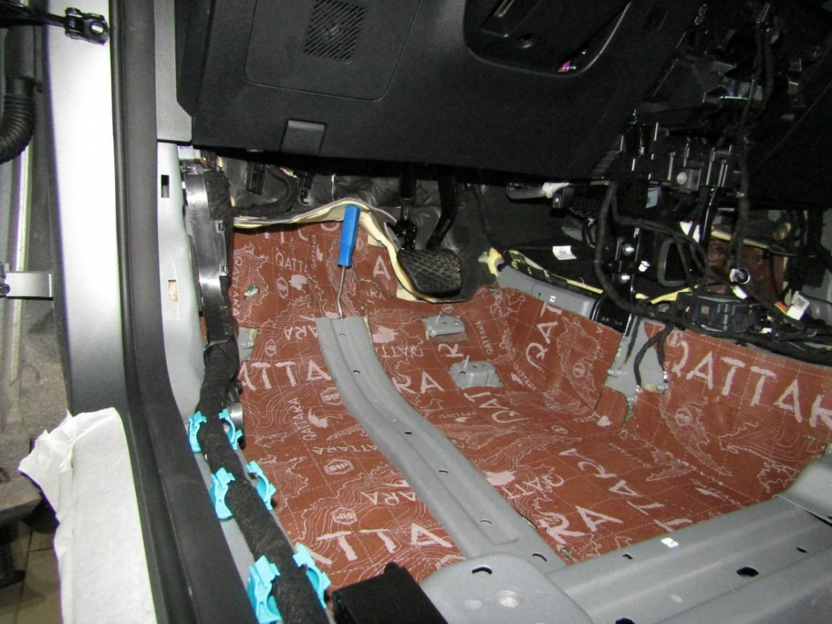 Первый слой шумоизоляции делают из STP ProFi Plus, считающегося одним из самых эффективных вибродемпферов. Материал сохраняет свойства даже при повышенной влажности и низких температурах. Для формирования второго слоя используется STP Qattara, сочетающие в себе свойства звукоизолятора и звукопоглотителя.