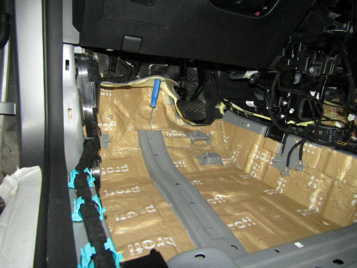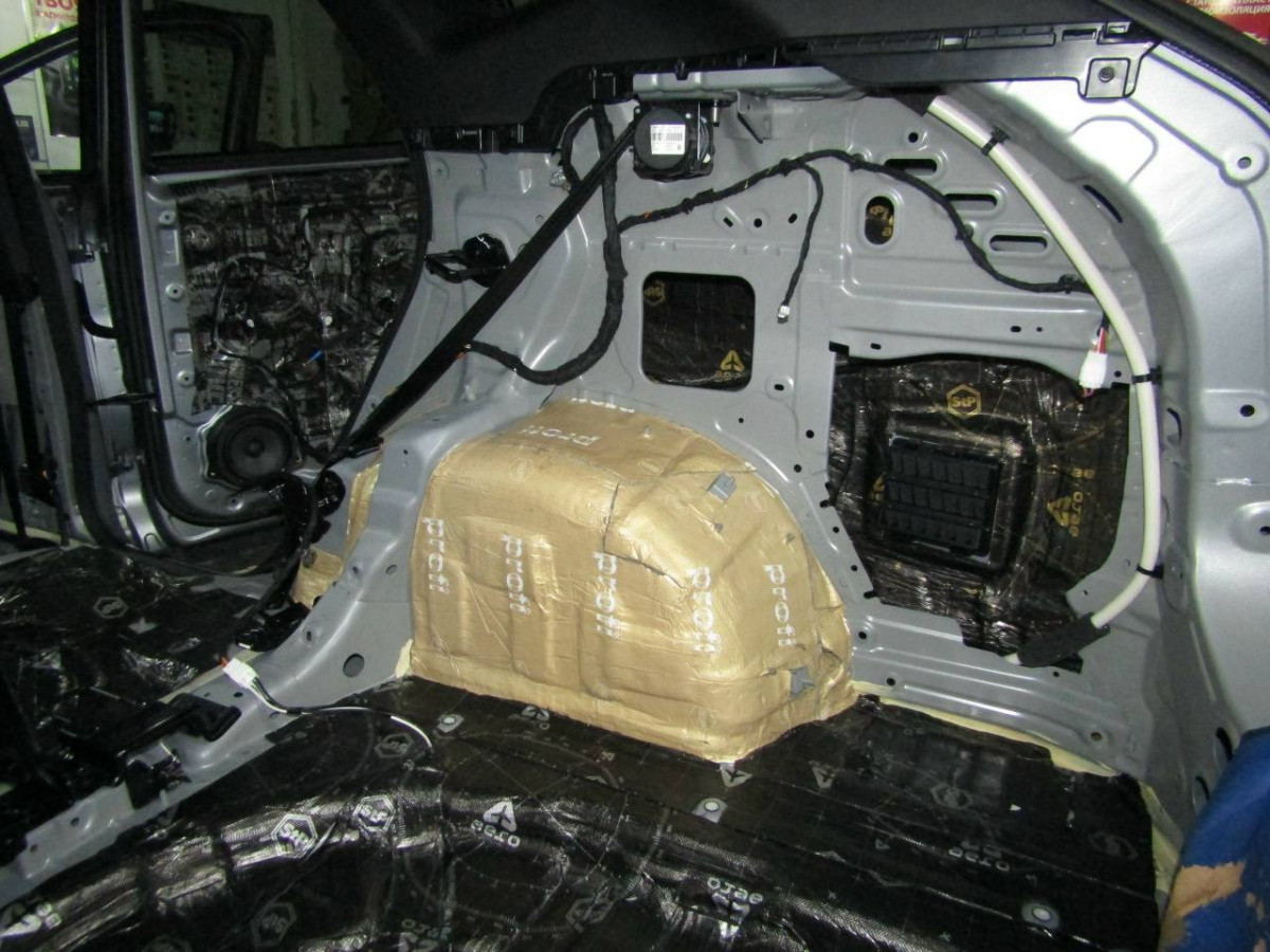 Шум через арки в салон проникает из-за небольшой их толщины или плохого качества дороги. Поэтому в план комплексной шумоизоляции всегда включается обработка этих областей. На этом этапе используется вибродемпфер повышенной плотности STP Profi Plus и шумопоглотитель Biplast Premium, которые защищают не только от шумов и вибраций, но и от коррозии. Для обеспечения требуемой степени защиты от шума материалы наносятся строго по технологии.