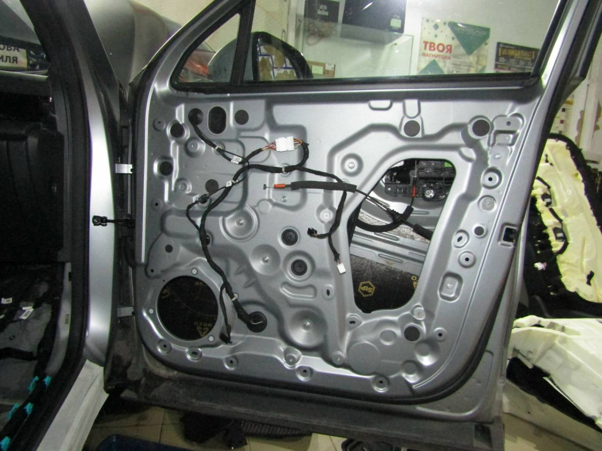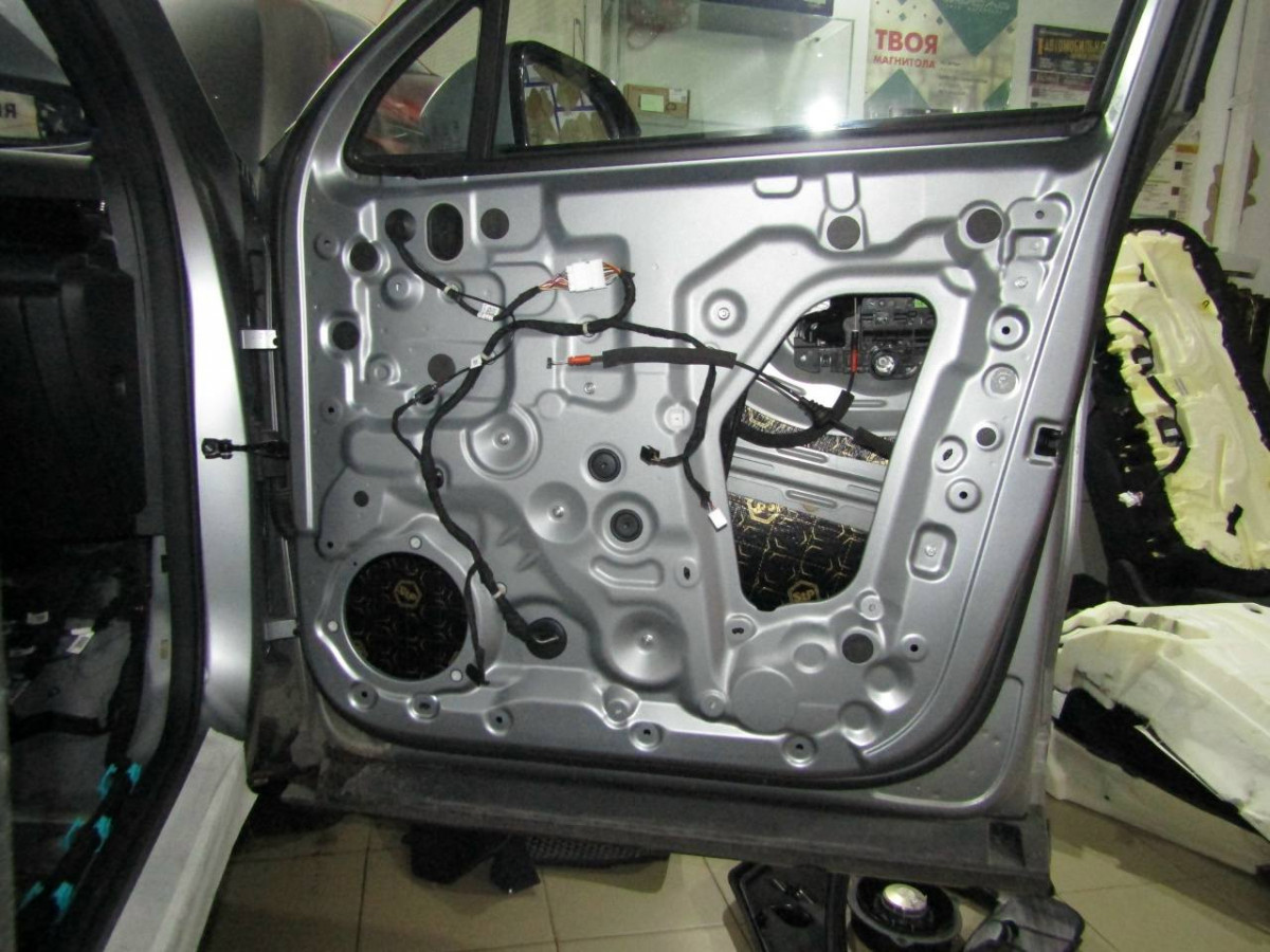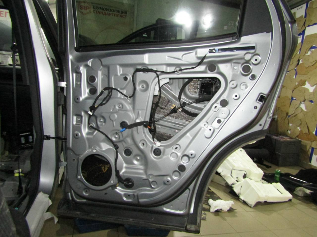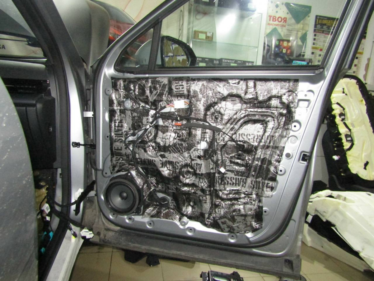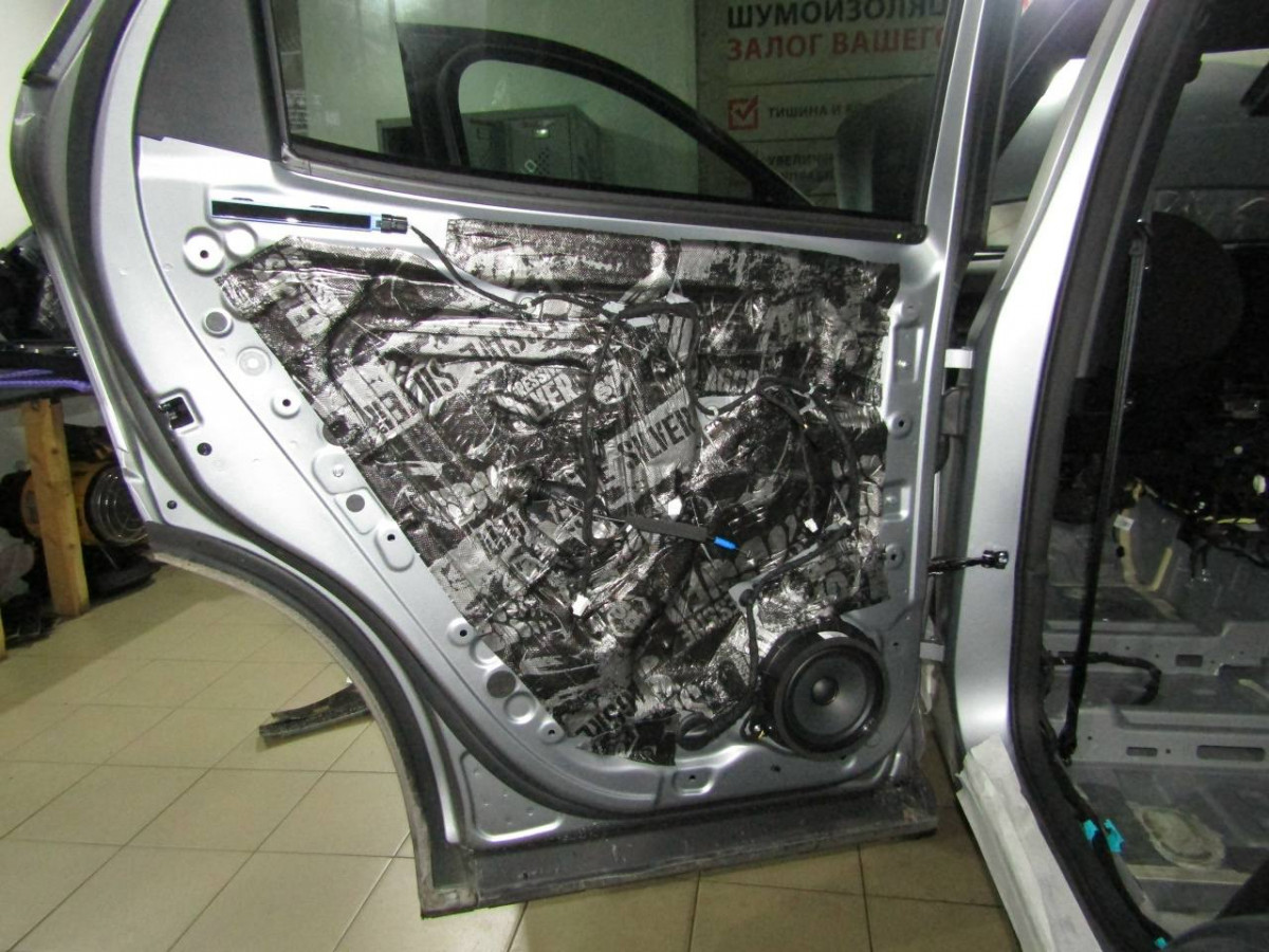 Шумоизоляция дверей автомобиля ‒ сложная задача, которую должны выполнять специалисты. Большой опыт работы позволяет нашим специалистам быстро и качественно выполнить эту работу. Для устранения вибрации металла наносится тонкий слой из STP Aero. Для усиления его эффекта на технологические отверстия устанавливается STP Silver. Обязательно применение материалов, поглощающих звуковые волны, например, Акцент Premium устанавливается вторым слоем на STP Aero. Чтобы пластиковая обшивка не издавала скрипы и стуки, ее оклеивают STP Biplast Premium.
