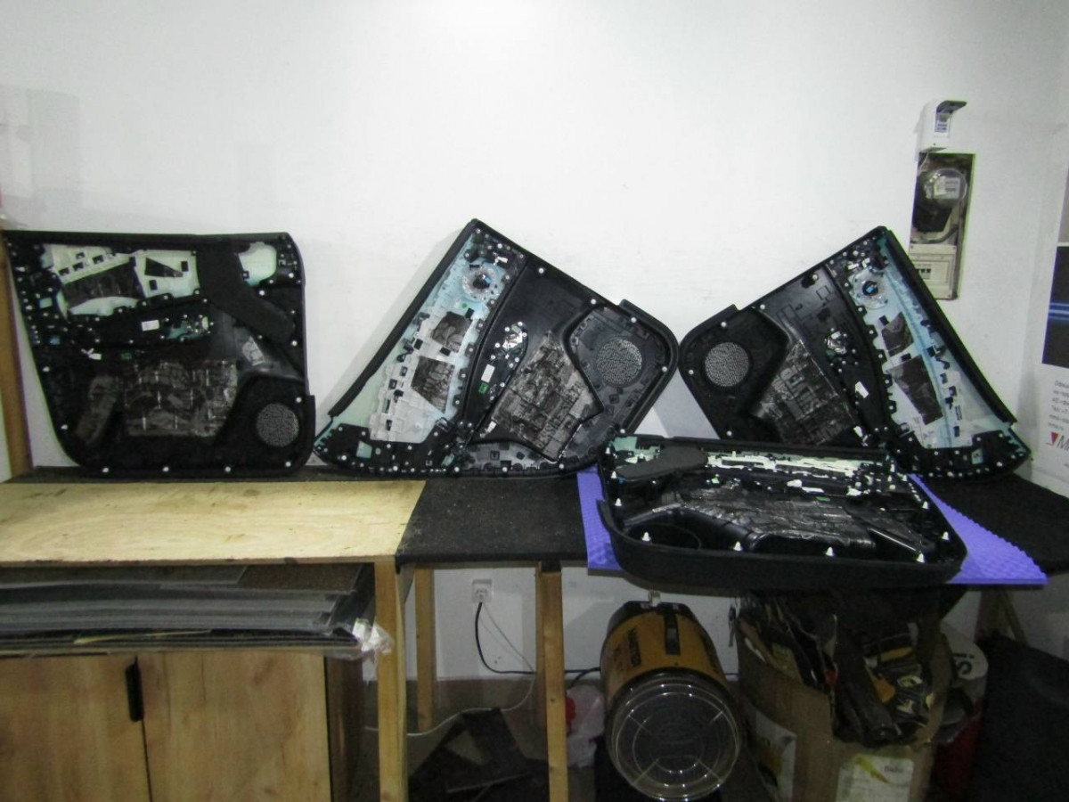 Перед шумоизоляцией специалисты демонтируют элементы салона, отключают электропроводку. Во время разборки они сохраняют все клипсы и крепежи, чтобы не нарушить эстетику и не затруднить процесс обратной сборки. Открывшиеся металлические поверхности подготавливают к оклейке.