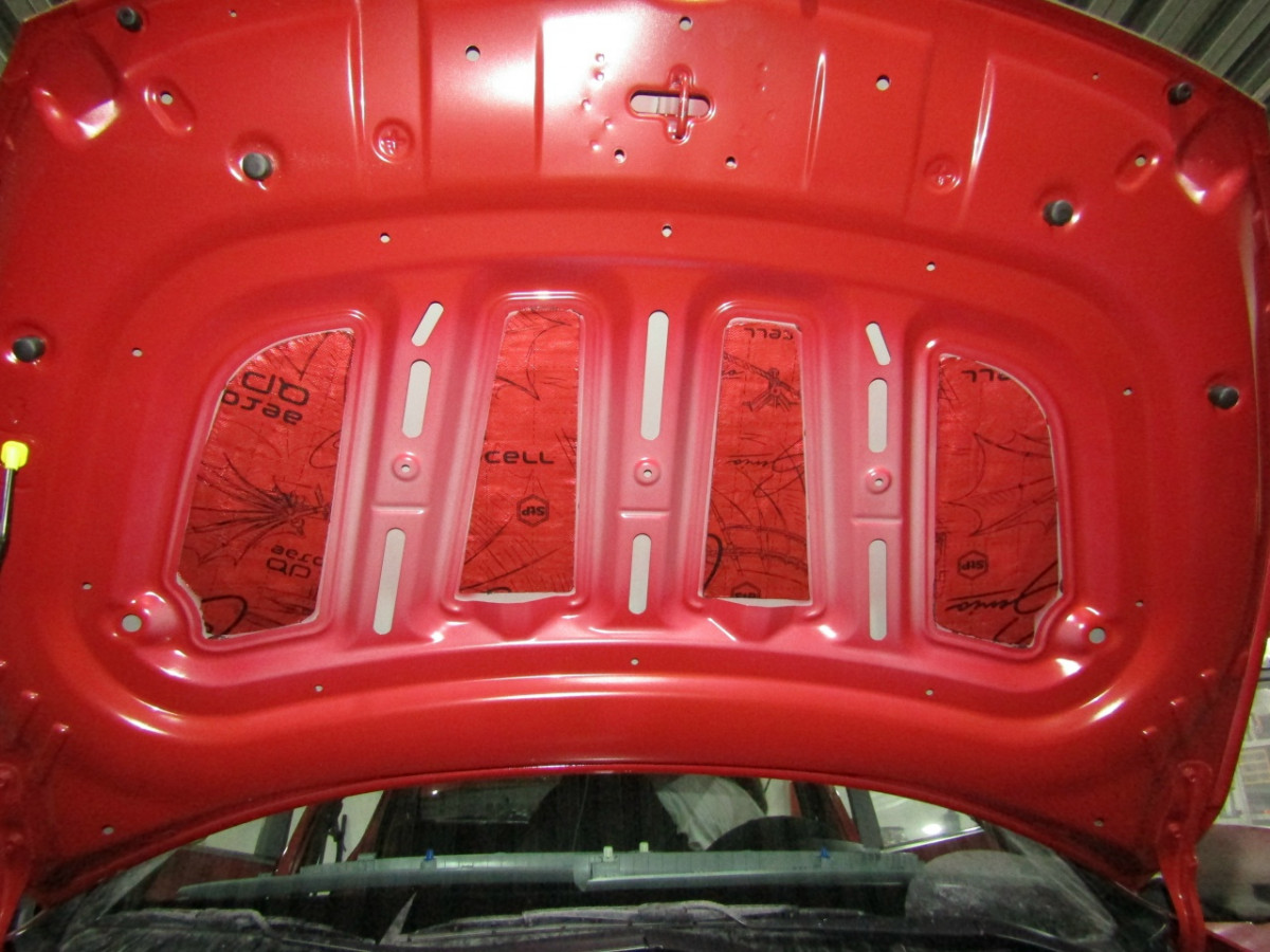 Двигатель Solaris KRS работает без сбоев и поломок, однако издает слишком много шума. Особенно, на больших оборотах. Звуковые волны и вибрации через крышку капота передаются на кузов и пластиковые детали салона, из-за чего они начинают дребезжать. Крышку капота необходимо оклеить вибро- и звукоизоляционными материалами. Первым слоем наносится STP Aerocell Genio, который устойчив к перепадам температур и прочно держится на поверхности. Лист нарезают и укладывают между ребрами жесткости. Материал будет защищать не только от шума и вибраций, но и от влаги.