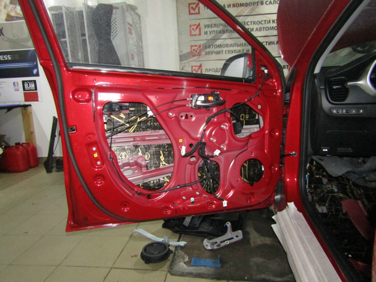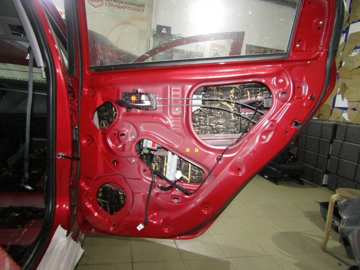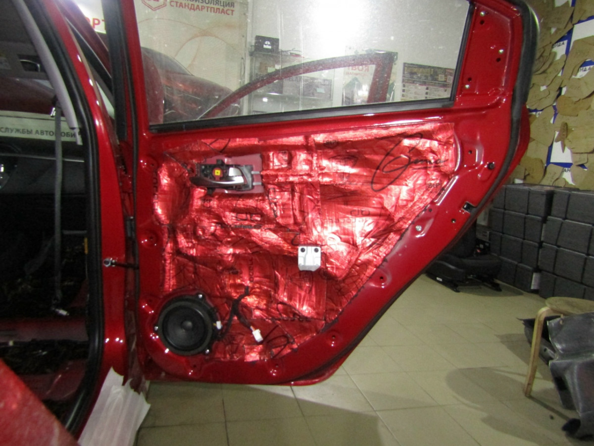 Двери у Solaris KRS сделаны из очень тонкого металла. Когда вы закрываете их, они издают не только хлопок, но и звон. Также тонкий металлический лист пропускает звуки ветра, улицы, автомобилей. Заводская шумоизоляция на дверях установлена не сплошным слоем. Эту ситуацию нужно исправлять. Специалисты полностью удаляют имеющийся материал. Затем они устанавливают вибродемпферы STP Aerocell Intrigo и STP Aerocell Genio.