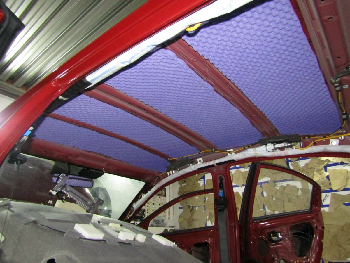 После установки двухслойной шумоизоляции крыша перестает передавать звуки в салон и сильно вибрировать, становится более жесткой.