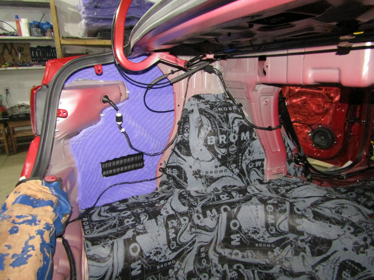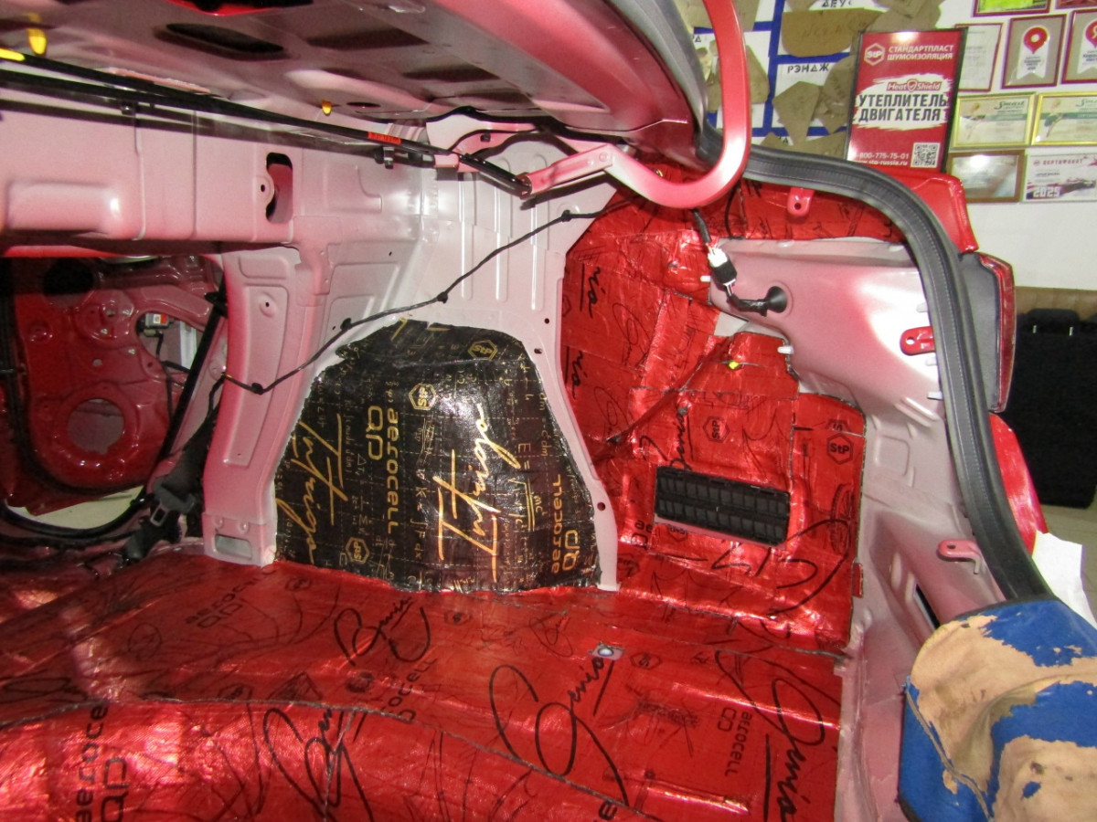 Мало кто считает шумоизоляцию багажника необходимой, тем более, что у седана этот отсек имеет небольшой объем. Однако в нем также есть немало свободного пространства, в котором распространяются звуковые волны. Шум усиливается, если в багажнике перевозятся вещи. И его хорошо слышно в салоне, особенно пассажирам заднего ряда. Шумоизоляция багажника требует использования нескольких видов материалов, выгодно дополняющих эффекты друг друга. В нашем случае это вибродемпферы STP Aerocell Genio, STP Aerocell Intrigo, звукоизоляционные материалы Biplast Premium и Акцент Premium 10мм. Какие этапы включает шумоизоляция багажника: