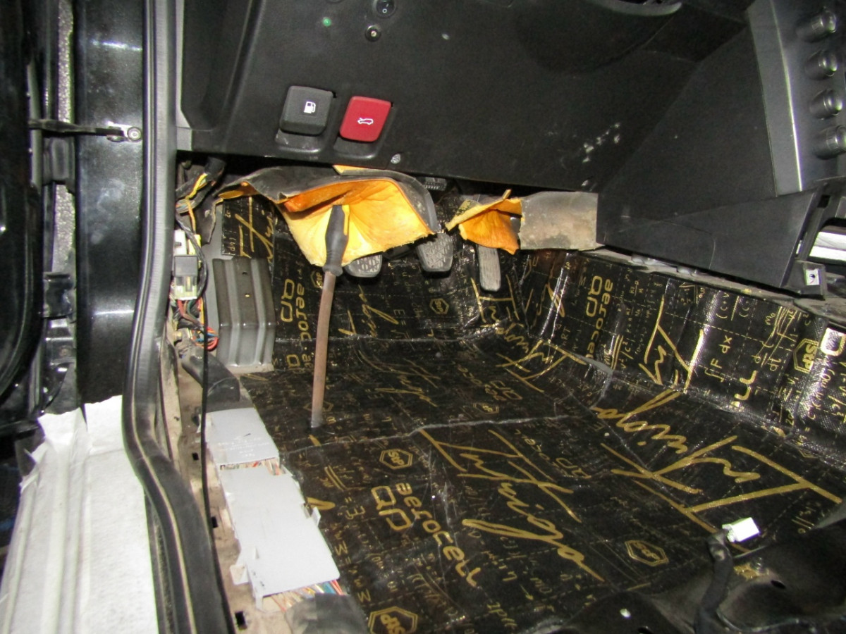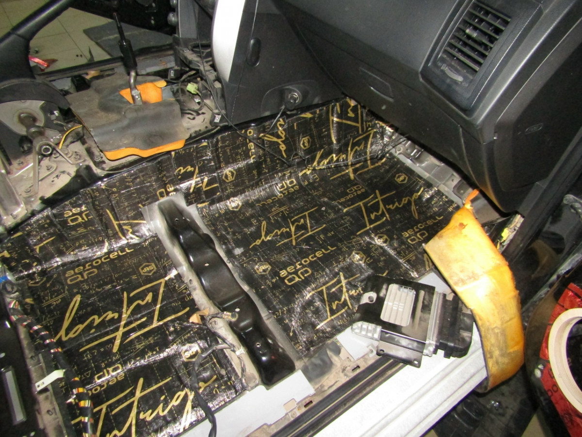 - Полу. Днище практически лишено шумоизоляционного слоя. Поэтому установка новых материалов здесь обязательна. Только так вы сможете избавиться от мощных вибраций и шумов.
