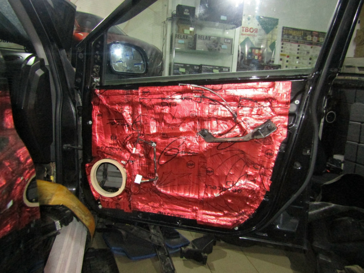 Если вы любите слушать музыку во время поездок, обработка дверей является обязательной. При отсутствии изоляционных материалов резонируют и создают помехи в звучании динамиков. Для получения доступа к обрабатываемым поверхностям двери разбирают. Ровные металлические поверхности закрываются вибродемпфером STP Aerocell Intrigo. Барьер на пути звуковых волн извне создается с помощью закрытия технологических отверстий с помощью STP Aerocell Genio.STP Silver и Biplast Premium наносится на обшивку двери.